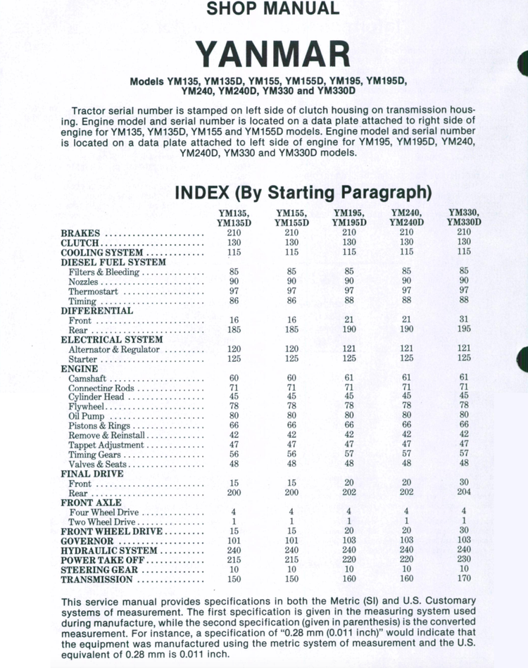 Service Repair Models Covered:Yanmar YM135-330 Tractor