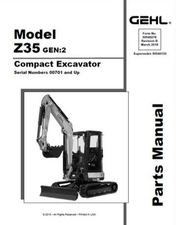 Download Complete Parts Manual for Gehl Z35 (GEN 2) Compact Excavator.