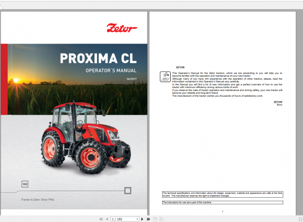 ENHANCE YOUR FARMING EFFICIENCY WITH THE ZETOR TRACTOR PROXIMA CL 100 (2017) OPERATOR’S MANUAL, NOW AVAILABLE IN A CONVENIENT PDF FORMAT. THIS COMPREHENSIVE GUIDE IS DESIGNED TO PROVIDE YOU WITH ESSENTIAL INFORMATION ON OPERATING AND MAINTAINING YOUR TRACTOR, ENSURING OPTIMAL PERFORMANCE AND LONGEVITY.